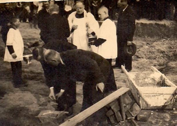 Uroczyste poświęcenie kamienia węgielnego przez księdza Rabińskiego