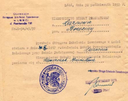 • naukę praktyczną (od 1. 04 do 31. 10). Podczas „nauki praktycznej” nauczyciele zawodu – inżynierowie, uczący jednocześnie w Technikum Rolniczym w Czarnocinie, odwiedzali swych uczniów 2 razy w tygodniu. Od początku istnienia szkoły do roku szkolnego 1960/1961 byli to: Wiktor Frelek, Tadeusz Sochaczewski i Romuald Mosieński.