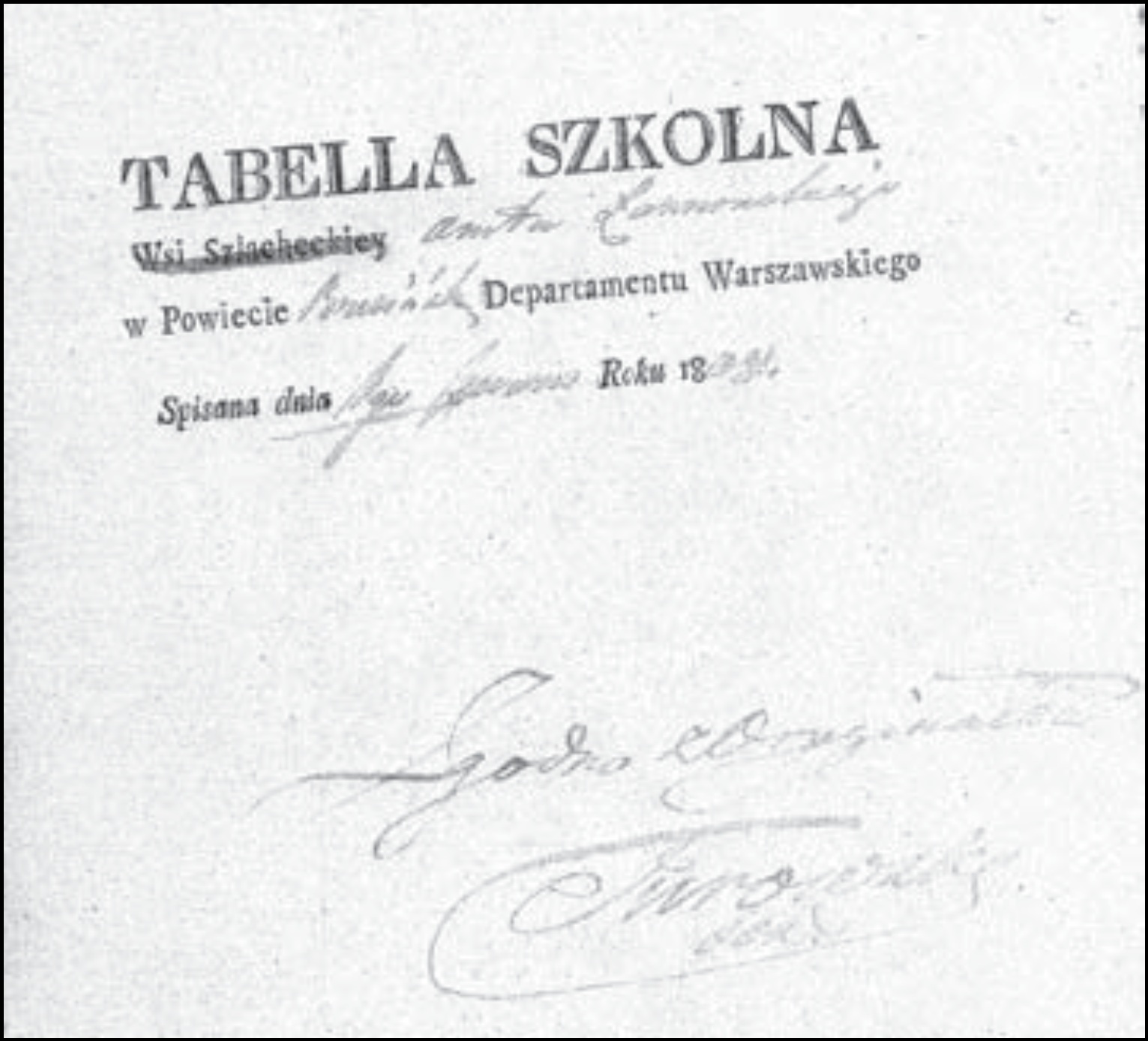 Umowa między Dozorem Szkoły Elementarnej w Łaznowie a nauczycielem Stanisławem Rykalskim – zatwierdzona 15 września 1828 r. w Warszawie