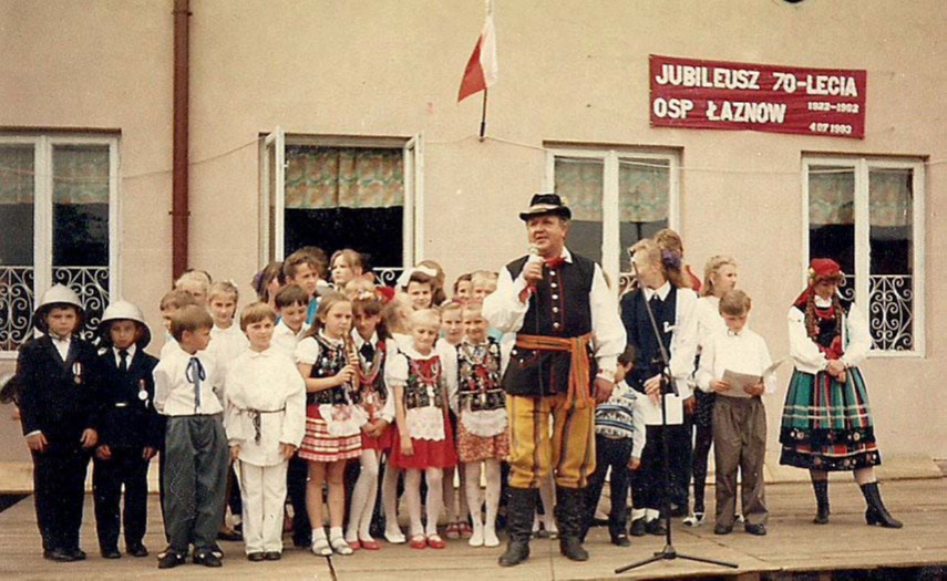 Uczniowie Szkoły Podstawowej w Łaznowie podczas występu- 1993 r.