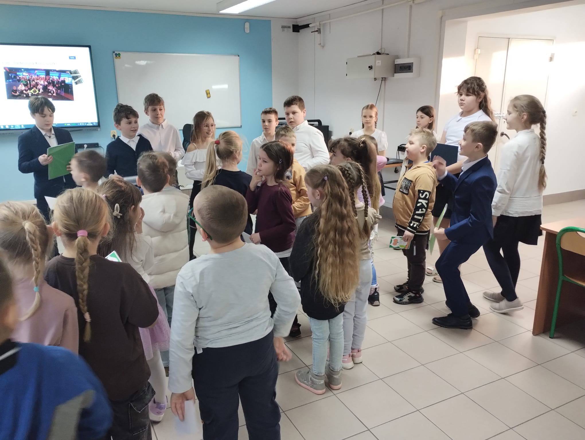 Obecni trzecioklasiści z dumą prezentowali nowoczesne pracownie przedmiotowe, zadając ciekawe zagadki, a kandydaci na pierwszoklasistów zdobywali kolejne naklejki - "bilety do pierwszej klasy".