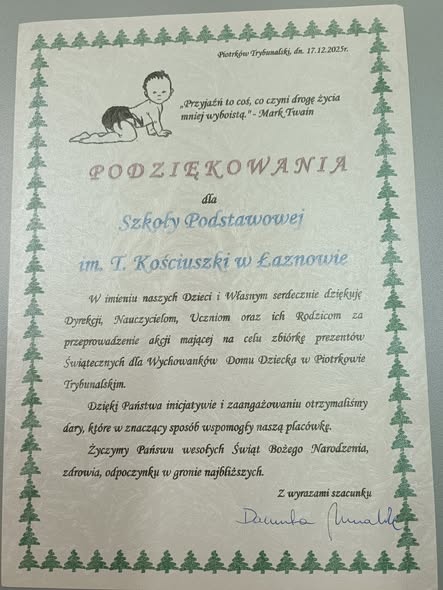 W dniu dzisiejszym delegacja naszej szkoły wyruszyła z mikołajkową wizytą do Domu Dziecka w Piotrkowie Tryb. z inicjatywy Szkolnego Koła PCK.
